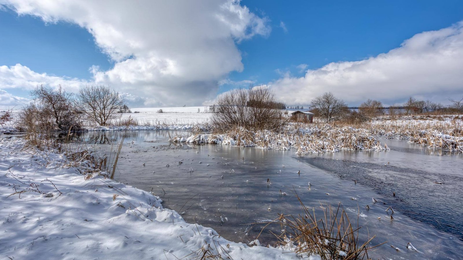 During the winter months, open water and circulation from winter winds promote relatively high and stable oxygen levels. Oxygen dissolves more readily in cold water. It is worth noting the pond simply requires less oxygen in the winter, because metabolic activity of fish, bacteria and aquatic plants is reduced in cold water.